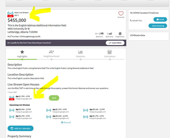 REALTORS® can input their live streaming events on their listings at: https://member.realtor.ca/Listings/