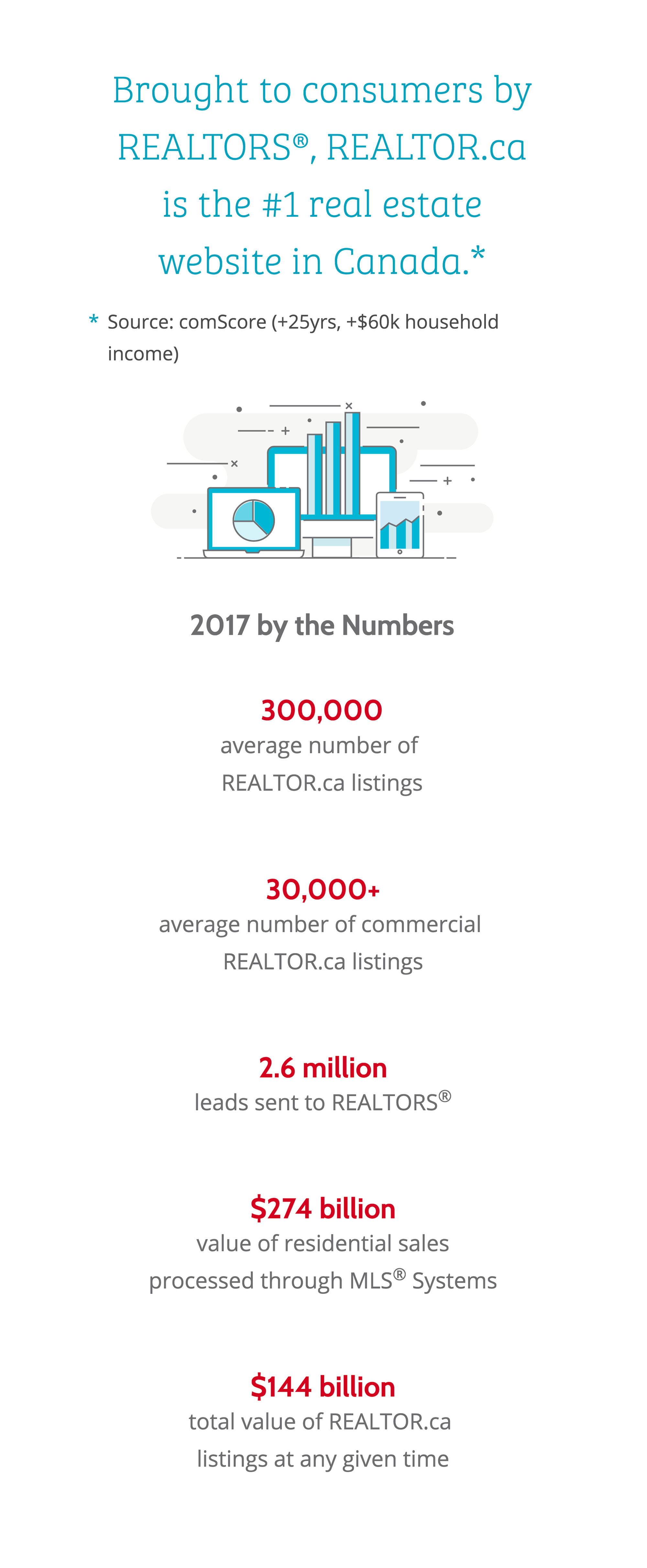 More than 72 million users, 965 million property viewings, 264 million visits and over five billion views on Canada’s most popular real estate website.