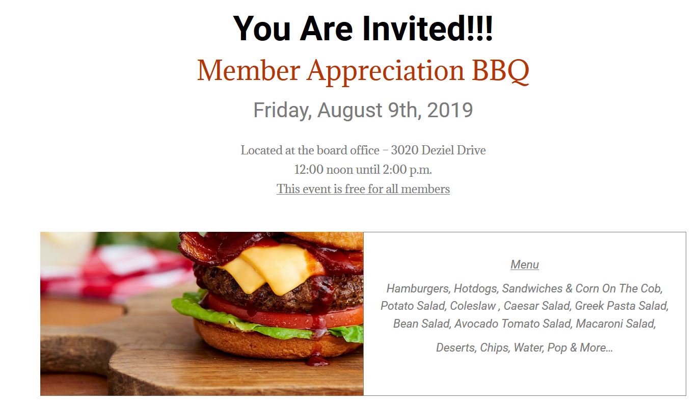 Registration is not mandatory however, would be appreciated, so we can gauge the number of attendees. Click here to register https://wecarnews.com/wecar-member-appreciation-bbq or Contact Barb at 519-966-6432.