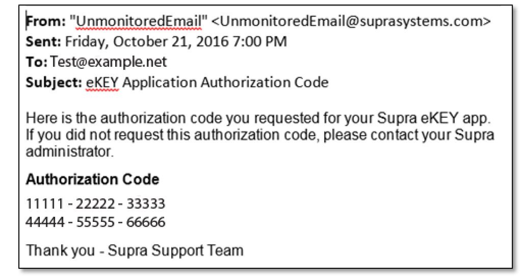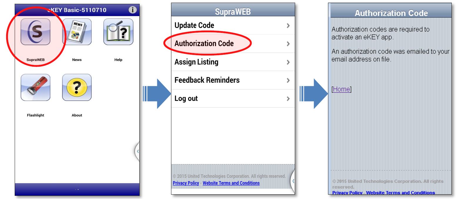 To obtain an eKEY authorization code from Mobile SupraWEB: